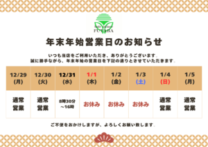年末年始営業日のお知らせ(ヘアーパレス フタバ店)